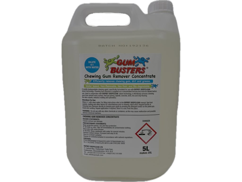 Velice účinná chemie na odstraňování žvýkaček s pomocí parního čističe Ospreydeepclean. Biologicky rozložitelná. Koncentrát ředitelný 1:4. Z jednoho kanystru naředíte 25 litrů detergentu.