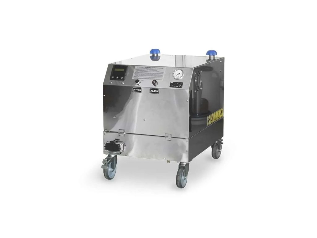Průmyslový parní čistič s tlakem páry 10 barů a příkonem 24 kW pro nejtěžší průmyslové aplikace v nerezovém provedení.