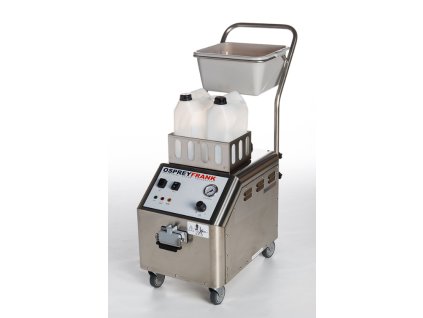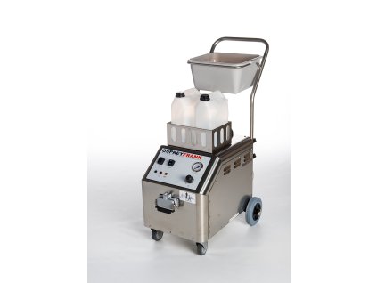 Profesionální parní čistič s tlakem 10 barů a průmyslovým vysavačem 1400W v nerezovém provedení. Funkce přisávání detergentu a oplachu horkou vodou.